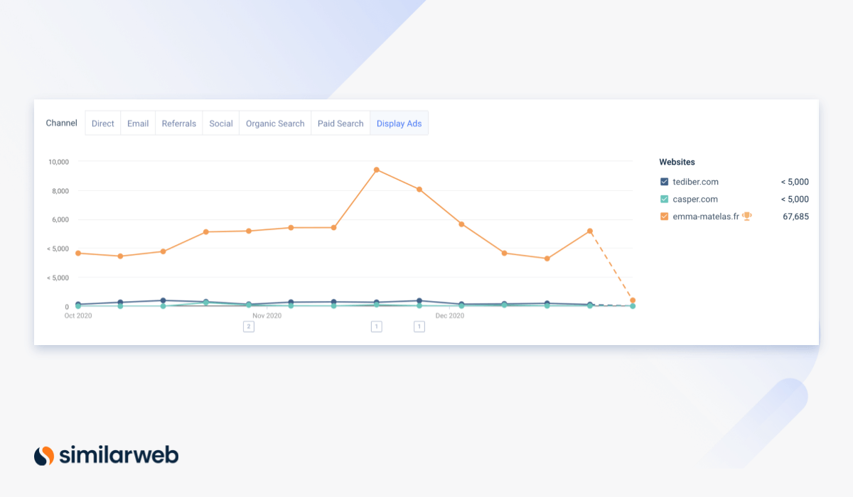 Vous pouvez même utiliser les données de Similarweb pour analyser la recherche payante et identifier les acteurs ayant mené des campagnes réussies en 2020.