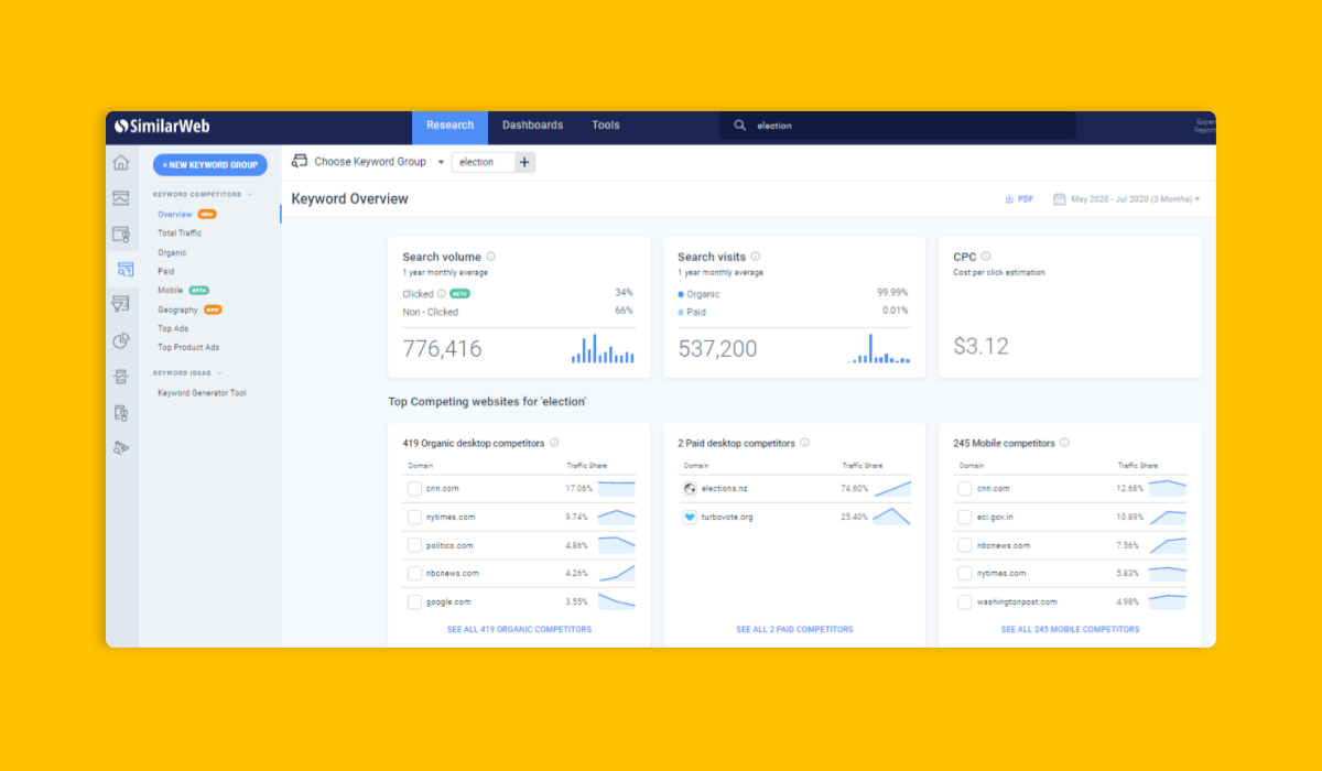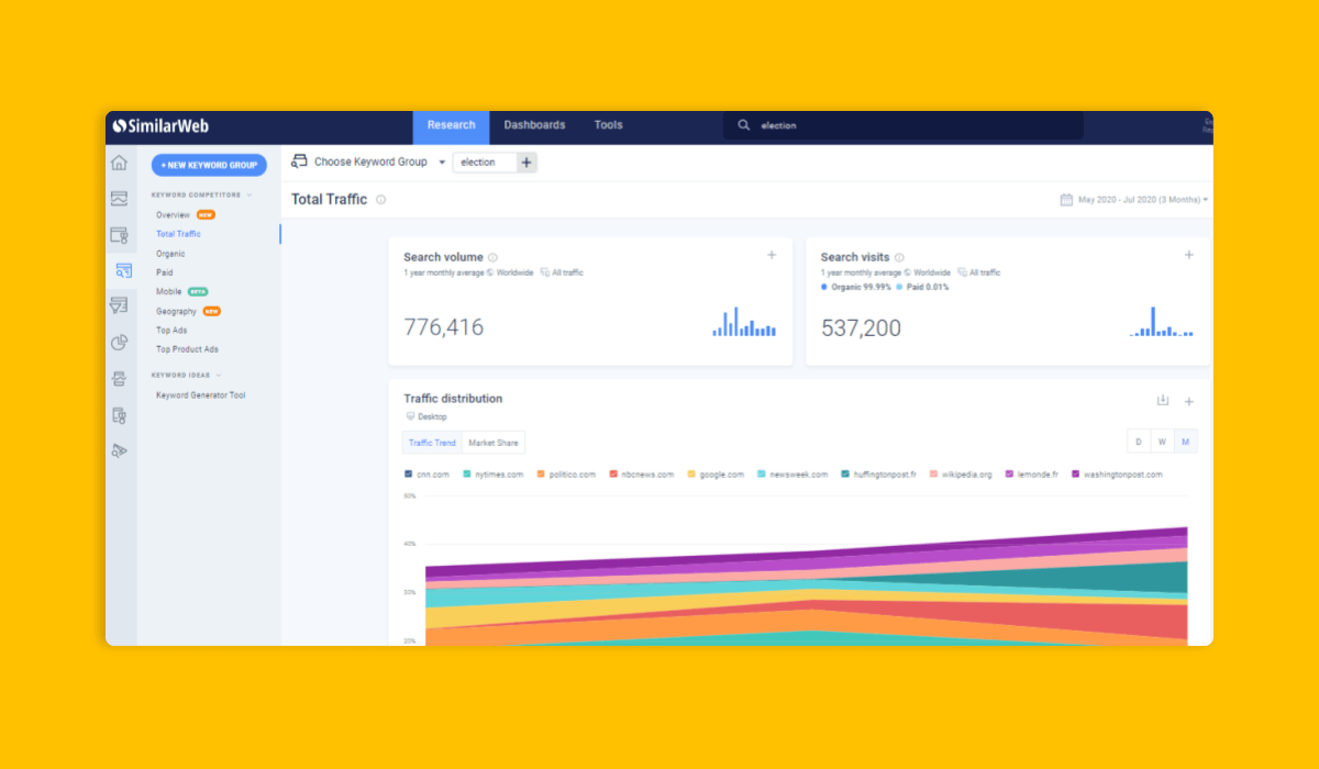 Vous trouverez ci-dessous un exemple des indicateurs de trafic total du mot-clé « election ».