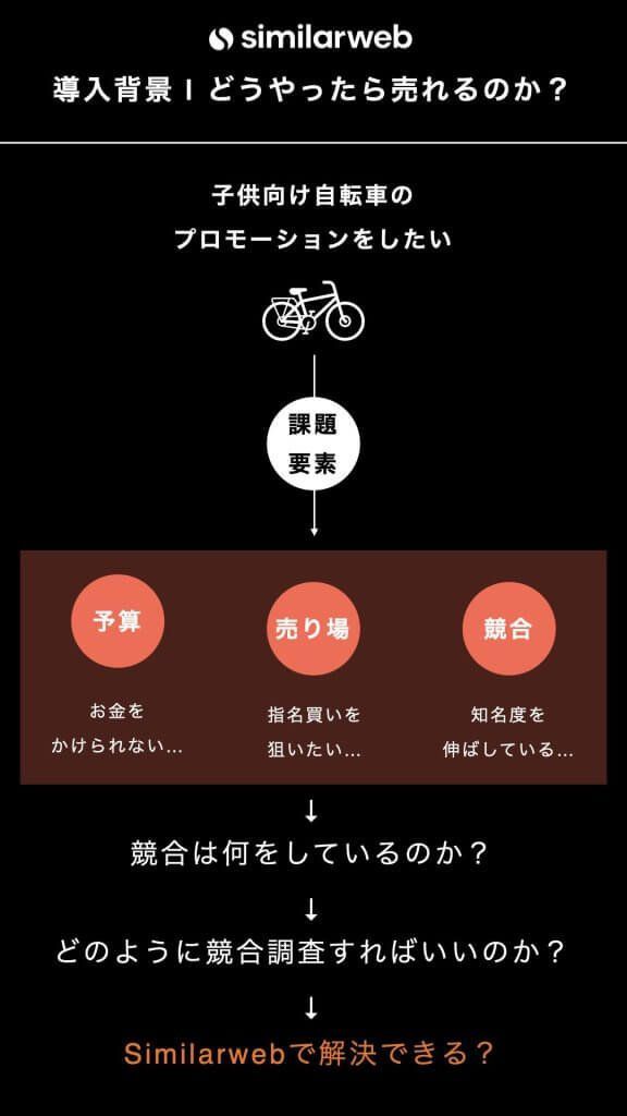 子供向け自転車事業のプロモーション手法に課題を抱えていたことが、Similarwebのような市場・競合分析ツールを検討し始めたきっかけです。
