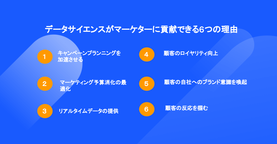 通常、マーケターはキャンペーンが終わるたびに顧客データを収集しますが、データサイエンスによって、これをノンストップで行うことが可能になります。これは、新しい機会を探り、トレンドを予測し、競合に打ち勝つために特に重要です。