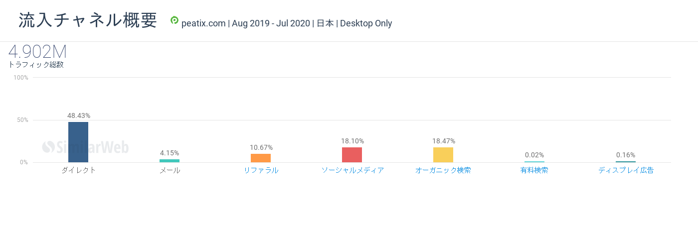 ここからは、シミラーウェブのウェブサイト分析を使用して、peatix.com について見ていきたいと思います。
