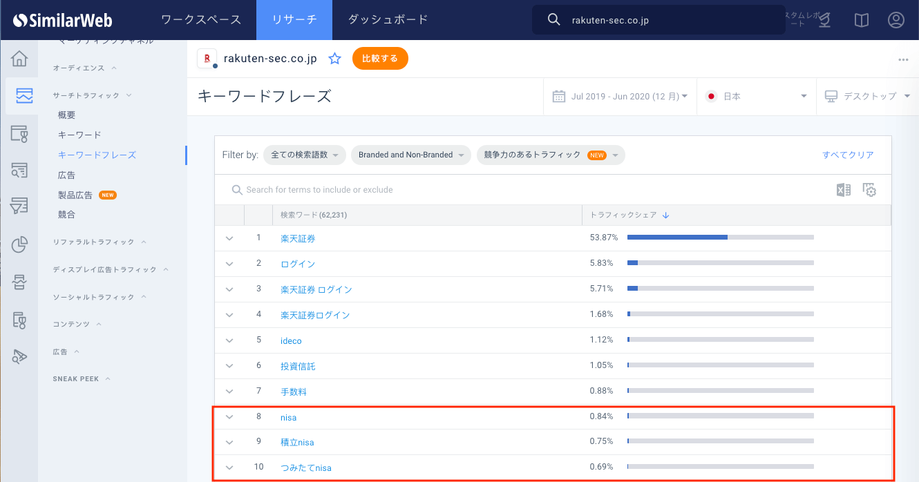 今回、NISA関連キーワードでの流入が目立っていた楽天証券を詳しく分析し、以下のことが分かりました。