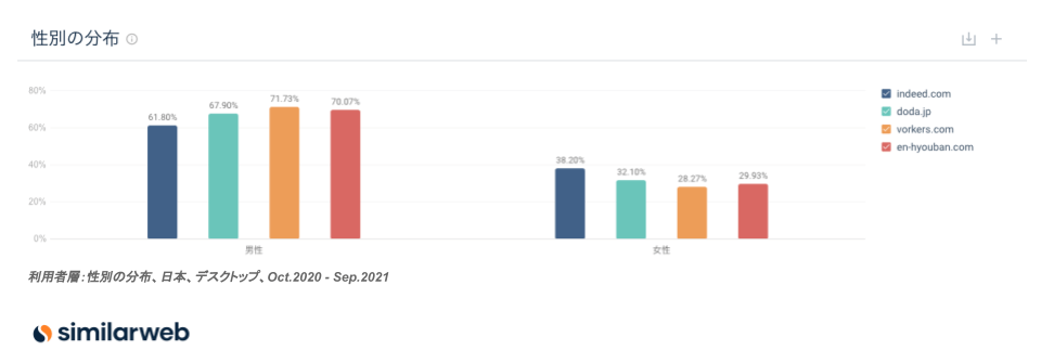 転職サイトと口コミサイトの性別分布