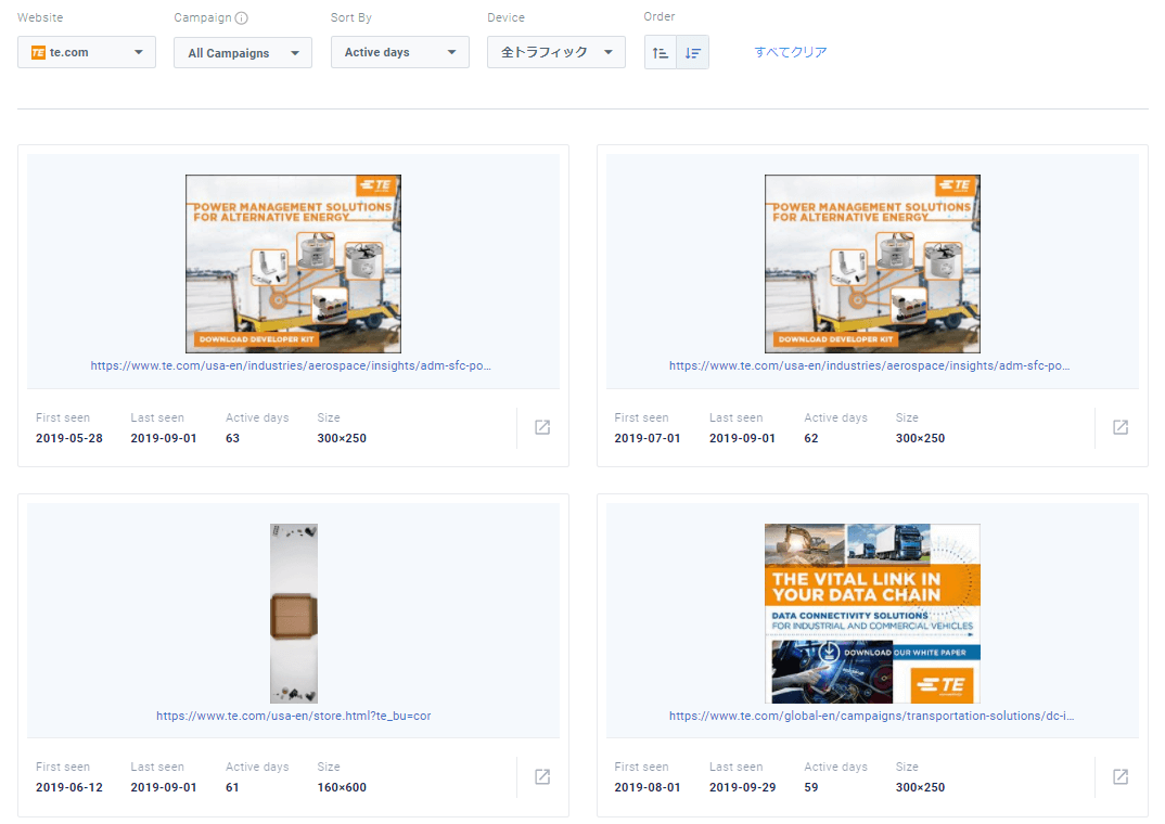 露出期間の長いディスプレイ広告にて、プロモーションされているカテゴリ、品番を調べることで、ベンチマーク結果と相対関係があるようであれば、自社の活動に採用をするなどのアクションが求められます。