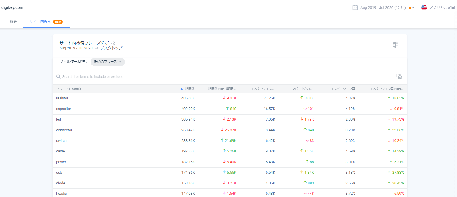 画像6:digikey.comサイト内検索フレーズ分析結果