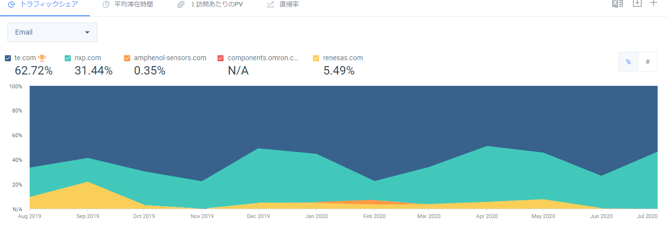 TE Connectivity、NXP、Amphenolと、Omron、Renesasサイトの流入チャネル、Eメールチャネルからの流入