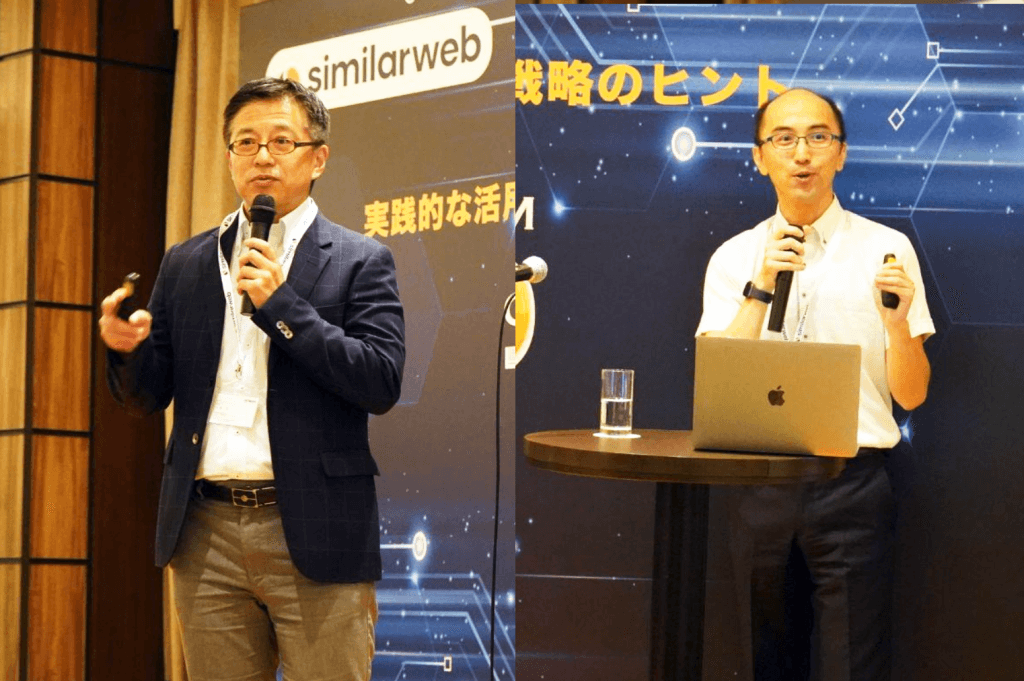事例紹介セッションでは、株式会社日立ハイテクの千野守氏と向尾将樹氏が登壇。グローバル規模でのデジタル競合分析およびマーケットインサイトの導出にSimilarwebをどのように活用しているのか、実際の取り組みを交えながらご紹介いただきました。