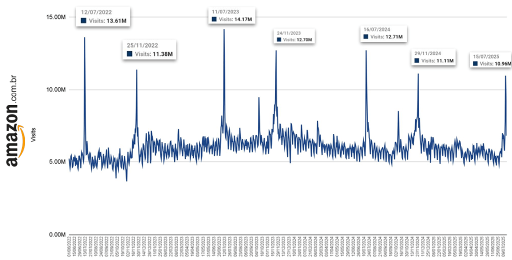 O Amazon Prime Day 2025 chegou com força total ao Brasil nos dias 15 e 16 de julho, e os dados da Similarweb mostram como esse evento já se consolidou como um dos principais marcos do calendário promocional do e-commerce nacional.