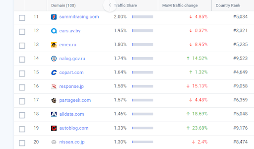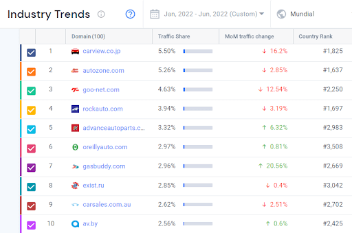 A nível mundial, os dados da Similarweb revelam que todos os websites do TOP 20 que cresceram seu tráfego online no primeiro semestre estão relacionados a produtos e serviços de manutenção de carros.