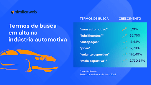 Agora que já entendemos porque a manutenção de veículos está ganhando share, talvez você esteja se perguntando: “Ok, mas o que especificamente o cliente da indústria automobilística está buscando agora? Quais são os termos mais digitados na internet quando o assunto é manutenção de veículos?”. Para responder a esse questionamento, uma navegação nos dados e insights da Similarweb é bastante produtiva.