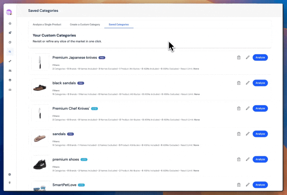 And yes, you get the same level of insight as the built-in Amazon ones. You’ll also find your team’s shared categories neatly organized under “Favorites.”