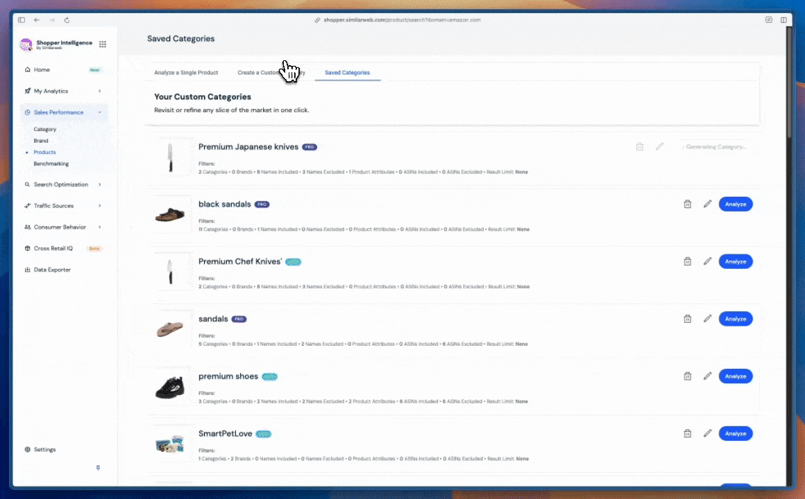 Whether you’re organizing by product line, competitive set, or retailer taxonomy, Shopper Intelligence’s new Custom Categories adapts to your business like a Swiss Army knife. With real-time previews, you see exactly what you’re building before you commit.