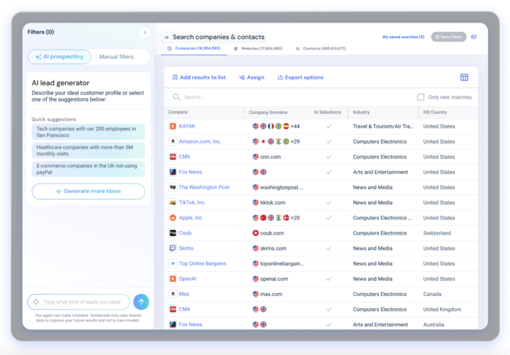 Yes. Use our Sales Intelligence to find companies showing active buying signals based on their digital activity.