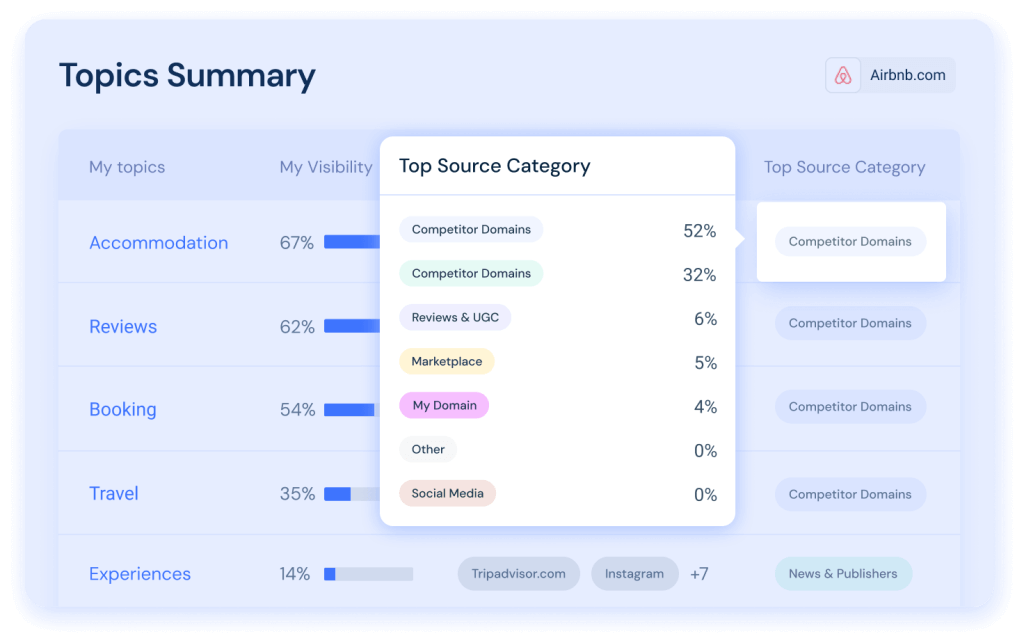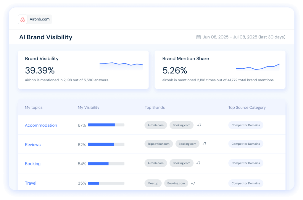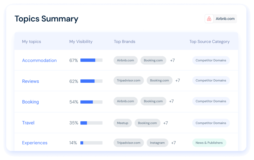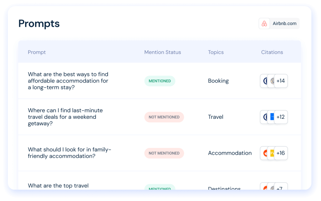 生成AIエンジンの中で自社サイトがどのように表示されてるかを確認し、 ブランドに関わる話題や投稿内容、最新の動向を把握可能。 AI時代の検索対策(ai 検索 対策)に役立ちます。