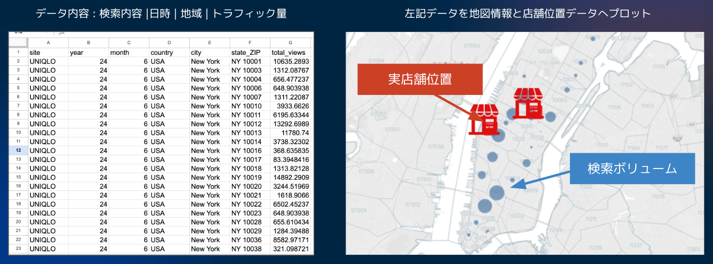 - 特に位置情報をヒートマップ表示することで消費者の需要を分かりやすく可視化