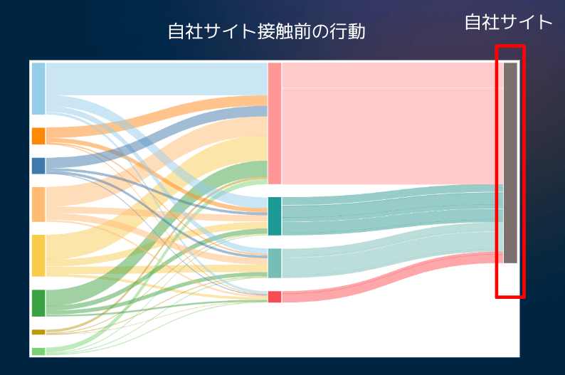 自社サイトの訪問前後でユーザーがどの外部サイトを訪問しているかを可視化します。これにより、ユーザーの態度変容をより詳しく把握できます。