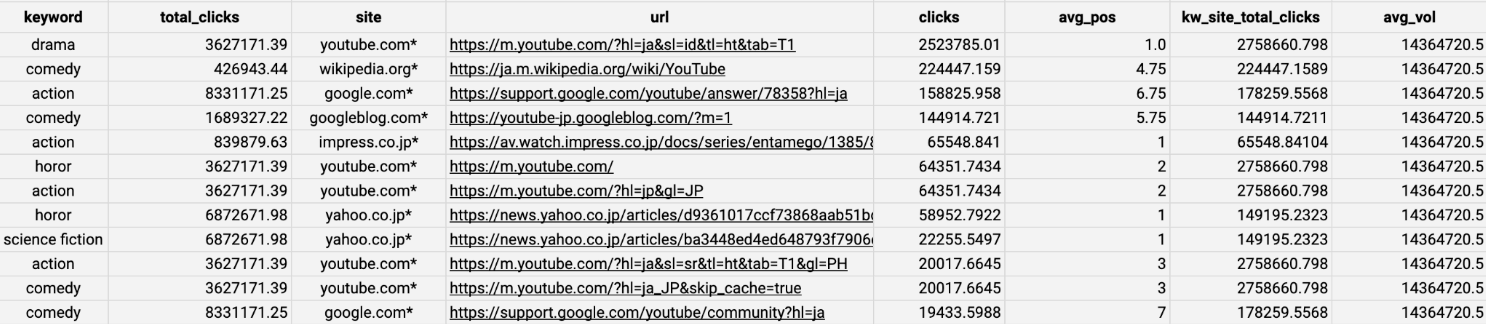 - ご指定頂いたキーワードの、検索回数、クリック数、遷移先URL等をご提供