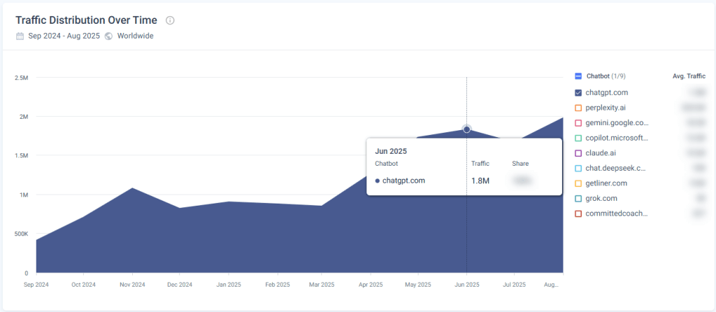 はい。シミラーウェブのChatGPTアクセス追跡では、任意のWebサイトに対するPerplexityからの推定訪問数を確認できます。