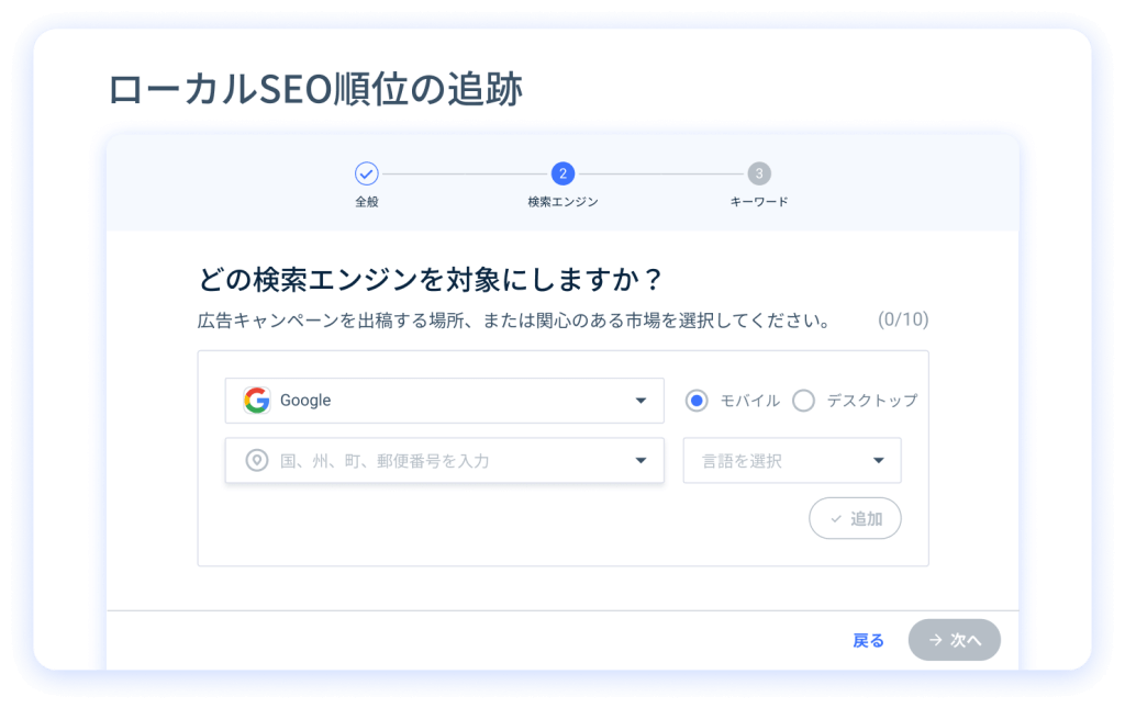 SimilarwebのSEOランキングツールでは、最大20万のキーワードを追跡できます。モバイル、デスクトップの両方で、国、州・都道府県、都市、郵便番号のレベルで計測ができます。