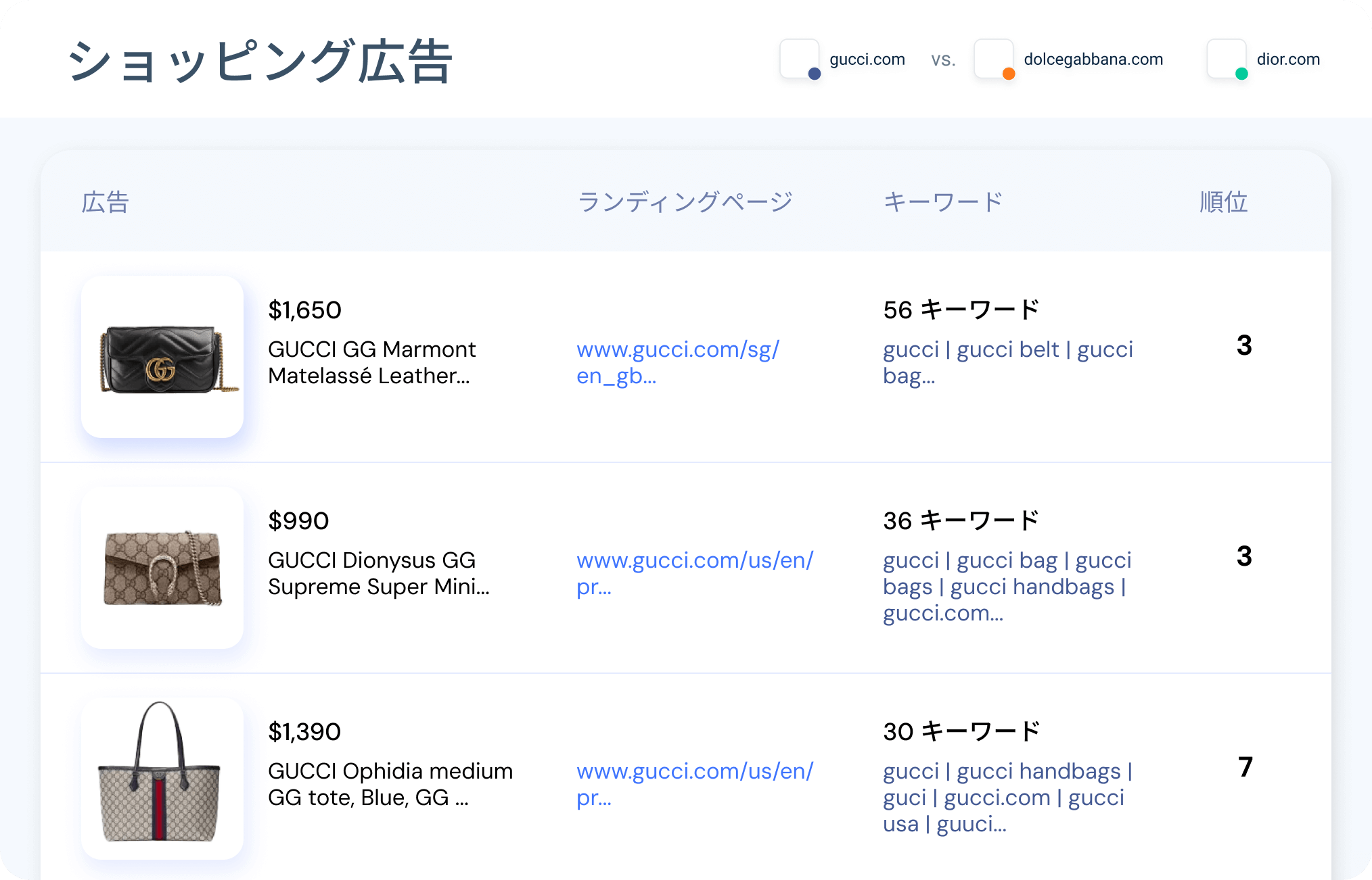 競合サイトのリスティング広告とディスプレイ広告の実態を明らかにする。
