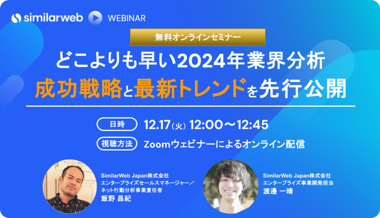 1月から11月までを対象に2024年を振り返り、競合の成功事例や失敗例を含む実践的な知見を共有。最新トレンドを短時間で網羅的に学ぶ貴重な機会です。参加者限定で、ウェビナーで使用したデータやスライド資料も提供予定です。