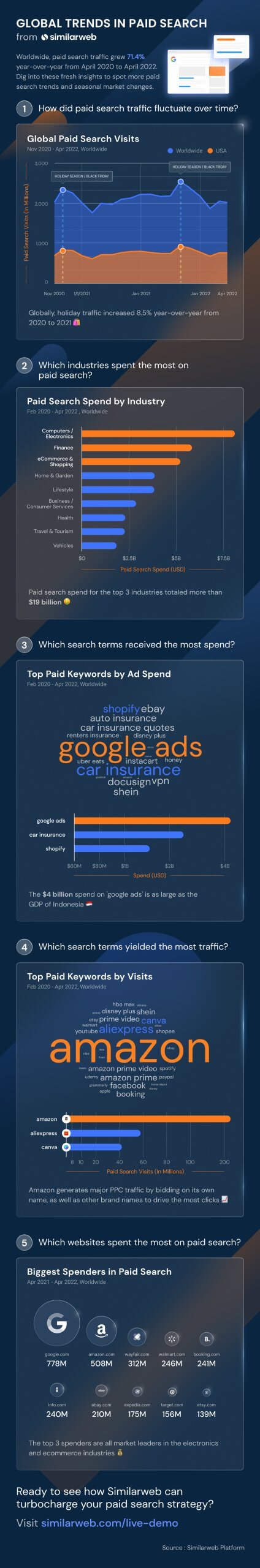 This guide will walk you through how paid search traffic was affected over time by looking at which industries showed extreme growth and which are still recovering from the pandemic. Get your copy to find out which industries invested the most in paid search, which keywords garnered the highest spend, and which search terms yielded the most traffic.