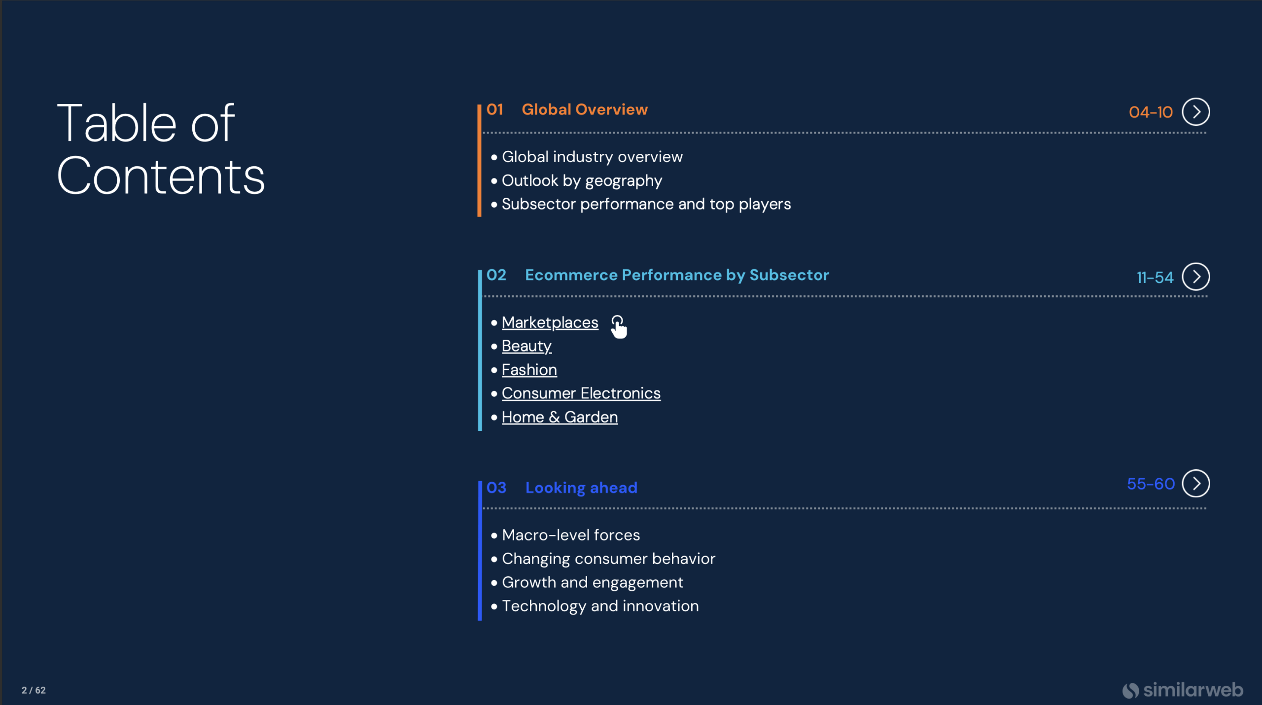 Marketplaces now lead overall traffic; fashion and consumer electronics show notable declines.