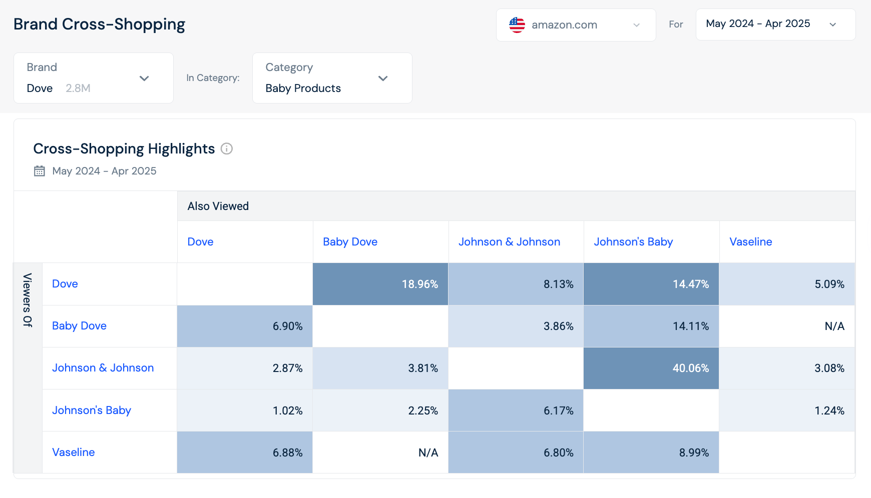 Yes. You can benchmark your brand against any competitor selling in your space. Analyze market share, sales trends, keyword visibility, traffic mix, and shopper behavior for both your products and your competitors - all within the same dashboard. Great for category management, media planning, and competitive response.