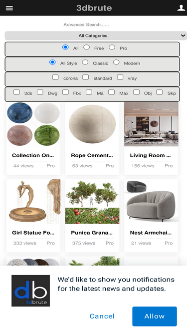 Million of 3D models for interiors, exteriors, furniture, appliances, plants, and more. Download free or buy at fixed prices. Format: 3ds Max. Render engines: V-Ray, Corona. Export formats: FBX, OBJ