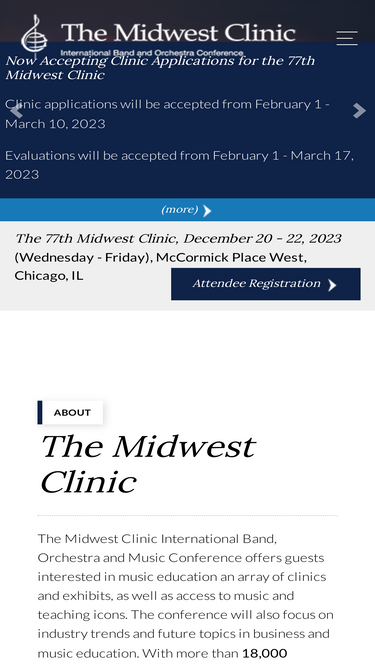 81%The Midwest Clinic will premiere many new events and products, along with stimulating clinics, inspiring concerts, and unrivaled opportunities to network wit...