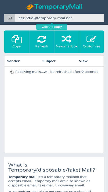 92%Create a free temp mail in seconds. No sign-up, no spam, full privacy protection for all your online activities.