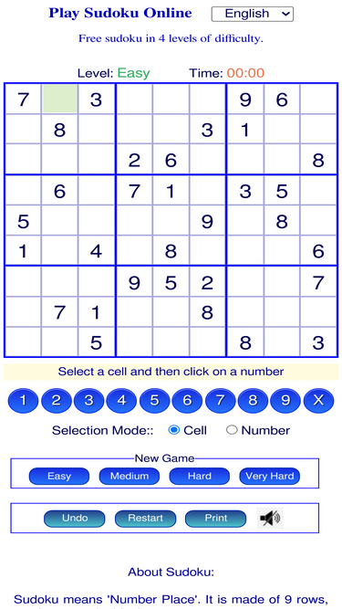 100%play free sudoku online from easy to expert level on sudoku.com. select a difficulty level of a web sudoku puzzle to challenge yourself and enjoy the game!