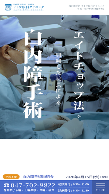 99%白内障の手術の見学会では、Eight-chop法の習得を目指す眼科医の方に向けて開催しています。お気軽にお問合せください。