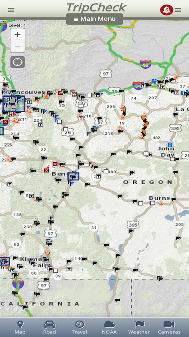 72%the tripcheck website provides roadside camera images and detailed information about oregon road traffic congestion, incidents, weather conditions, services and commercial vehicle restrictions and registration.