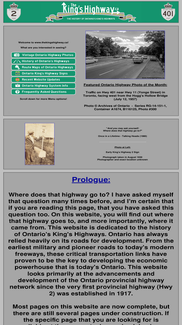 72%the history of ontario's king's highways: historical and informational website about the ontario provincial highway system, describing original highway routes in ontario from 1925-date, featuring lots of old photographs! highway mileage charts and present highway conditions are included.