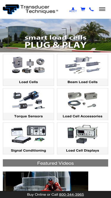 82%Transducer Techniques manufactures a complete line of Load Cells, Torque Sensors, and related instrumentation including data acquisition systems and data logging software. All transducer sensing elements utilize the most advanced metal foil strain gauge technology.