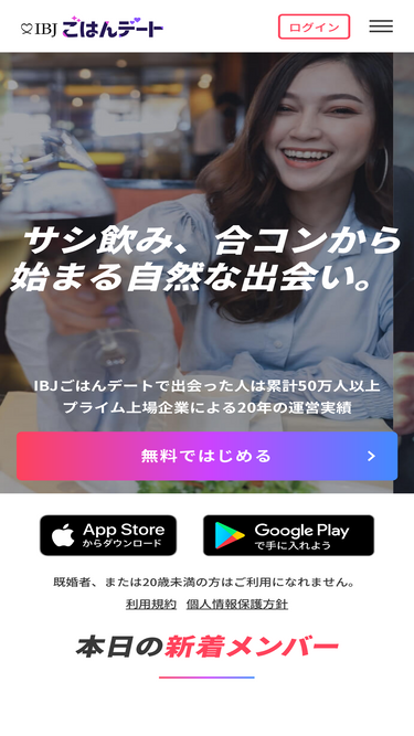 合コン・サシ飲みセッティングサービスIBJごはんデートのサービス終了のお知らせページです。