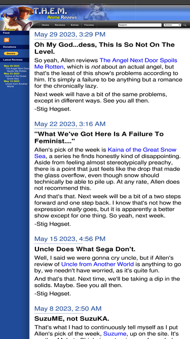 dedicated to reviews, as well as information, humor and discussion on japanese animation.