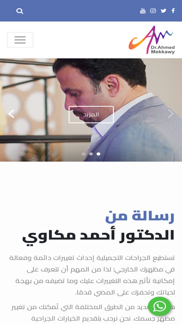 95%نرحب بكم في موقع دكتور أحمد مكاوي لجراحات التجميل سوف نعرض لكم كل ما يخص عمليات التجميل مثل زراعة الشعر و شفط الدهون ونحت الجسم و شد الترهلات و تجميل الوجة