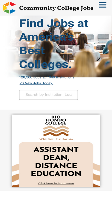 find community college jobs for higher ed professionals on communitycollegejobs. use ccjobs daily to find faculty, administrative, and executive jobs. community colleges in all 50 states advertise, recruit, and hire here.