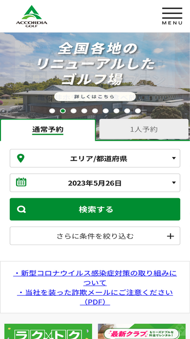 73%国内最大級のゴルフ場運営会社、アコーディア・ゴルフのゴルフ場予約サイトです。全国のアコーディア・ゴルフ運営ゴルフ場から最適なプランを検索。「ベストレート保証」と「お得なポイント」でお客様のゴルフライフにお応えいたします。1人予約、コンペ予約も充実。