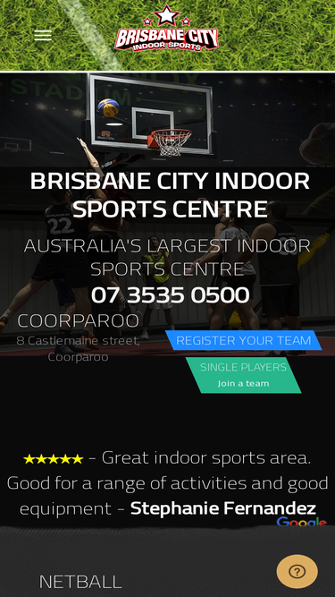 brisbane city indoor sports ~ australia's largest social indoor sports centres located in coorparoo. with a variety of social sports including netball, soccer, futsal, basketball, beach volleyball, rebound volleyball, cricket, dodgeball, junior sports, corporate bookings, school bookings, private parties, birthdays, training, christmas parties and much more.