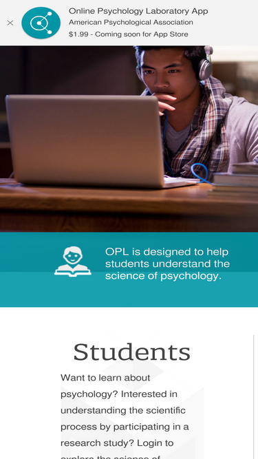 100%Welcome to the APA Online Psychology Laboratory! OPL provides highly interactive resources for the teaching of psychological science. The peer-reviewed materials include online studies and correlational studies, large data sets, demonstrations, and teaching aids. You are invited to use the site to furth...