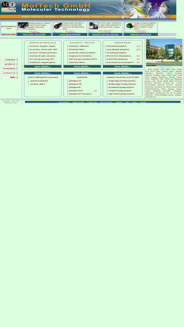 100%moltech home page provides information on the company product range divided in the following groups: nonlinear organic and inorganic single crystals, materials for solid-state lasers, optical materials, scintillators and laser devices. features, basic properties and applications of each material are described.