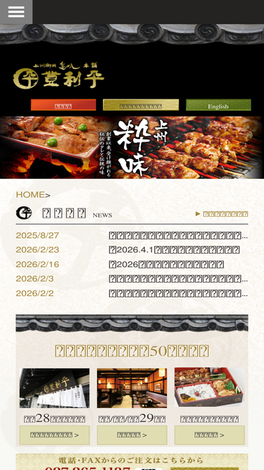 100%創業以来四十有余年。先達より受け継がれた伝統の味に研鑽に研鑽。究極の味を求めて真摯な努力を日夜重ねております。群馬・埼玉に33店舗、オンラインお弁当注文も。宴会、法事や慰労会にもご利用いただけます。