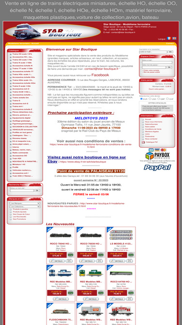 76%accueil. star-boutique est une boutique de vente en ligne de trains électriques spécialisés dans le modélisme ferroviaire. notre catalogue est constitué de modèles ferroviaires aux échelles ho, oo, n, hoe, i, et n. nous commercialisons des modèles miniatures pour réseaux ferrés tels que, tracteurs miniatures, engins pour pistes et chantiers. nous vendons aussi des maquettes plastiques à assembler, des voitures de collection miniatures,du petit outillage