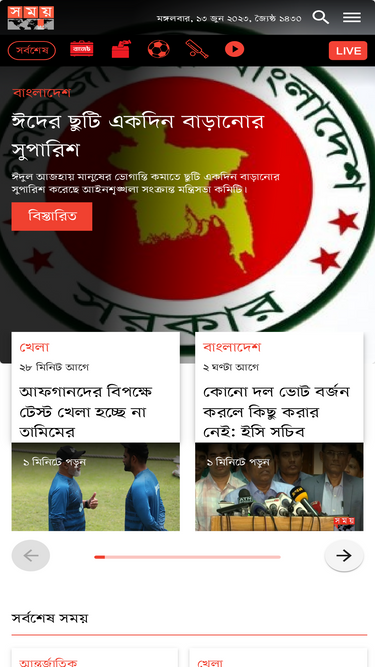 রাজনীতি, বাণিজ্য, খেলাধুলা, জাতীয়-আন্তর্জাতিক ব্রেকিং নিউজ, বিশ্লেষণমূলক সংবাদসহ যাবতীয় খবর পেতে চোখ রাখুন সময় নিউজে।