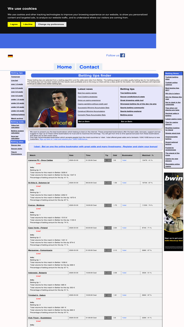 91%a website that search for quality betting tips with algorithms based on many parameters. see infos about the top bookmakers, free bets and league standings.