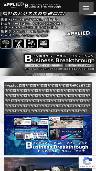 72%Applied ビジネスブレークスルーは、アプライドのHPC&BTO製造メーカーとしてのノウハウを基軸に業界・ジャンルごとのソフト・システムに最適な推奨機を、ソリューションと同時に広くご提案します。
