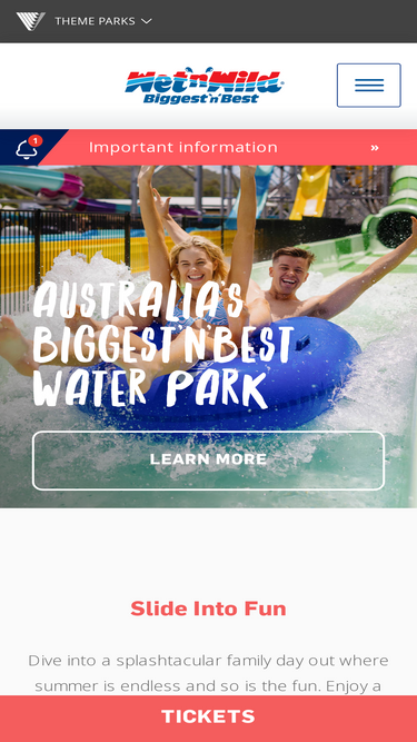 62%splash into another world, with some of the biggest and most extreme water slides in australia. wet'n'wild is not to be missed. buy your tickets today!